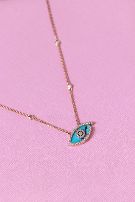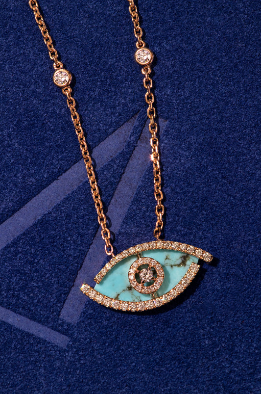 Messika Lucky Eye Turquoise/Rose Gold Diamond Necklace