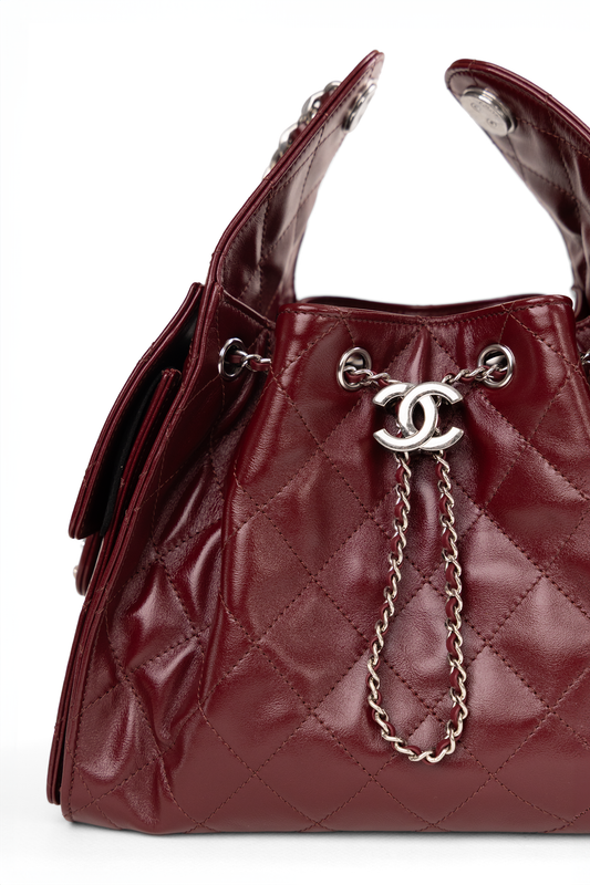 Chanel Small Hobo 25 Bag Shiny Lambskin in Burgundy