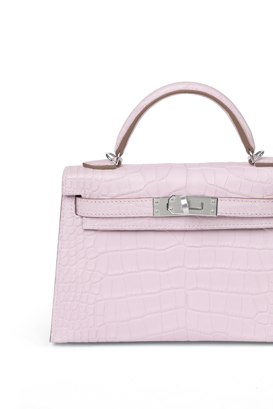 Hermes Mini Kelly Alligator in Mauve Pale with Silver Hardware