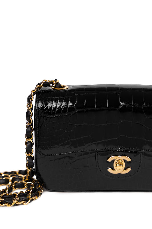 Chanel Mini Alligator Flap Bag in Black
