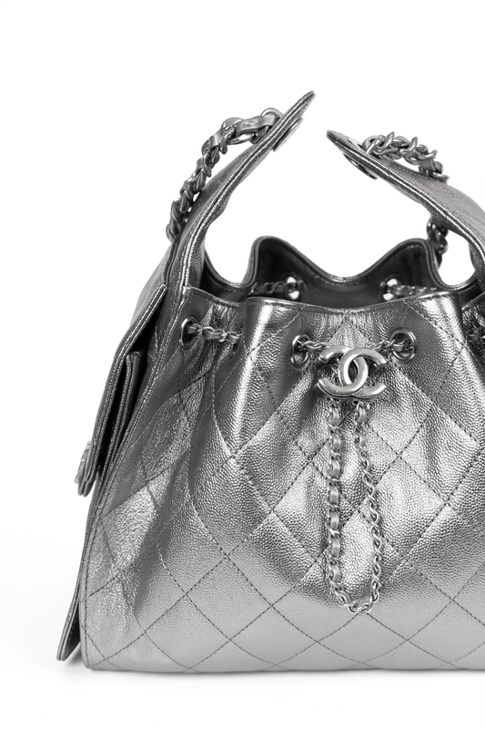 Chanel 25 Small Metallic Silver Bag