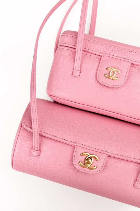 Chanel Bowling Bag & Long Vanity with Leather Straps in Rose