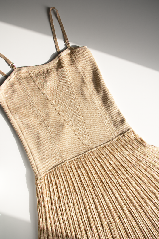 Chanel Beige Dress with Vanity Case with Chain in Gold