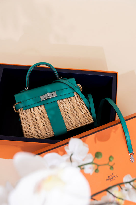 Hermès Mini Kelly Picnic in Natural/Vert Verone PHW