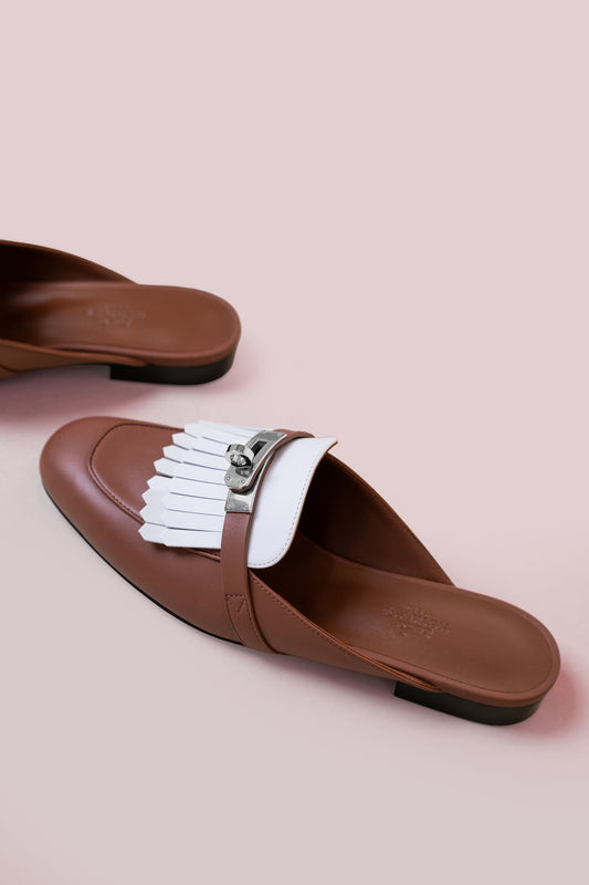 Hermès Oz Mule in Gold/White PHW