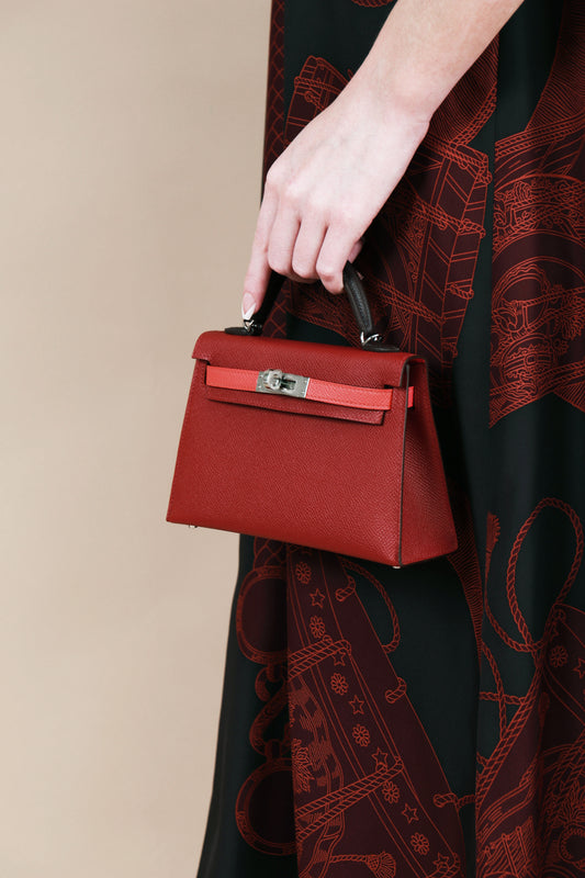 Hermès Mini Kelly Epsom in Rouge Venetian/Rouge Sellier/Rose Texas