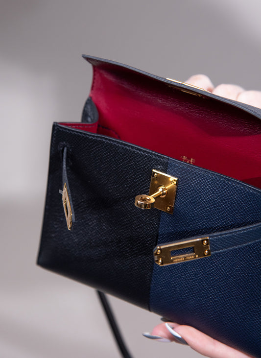 Hermès Mini Kelly 20 Blue Indigo/Noir/Rouge Epsom Casaque GHW