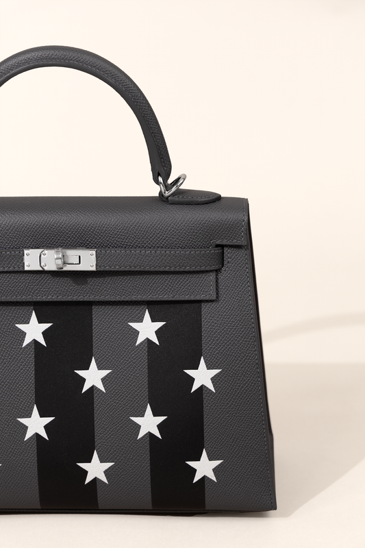Hermès Kelly 25 Sellier Epsom Casaque Etoilee Ardoise/Noir/Vert Peppermint PHW