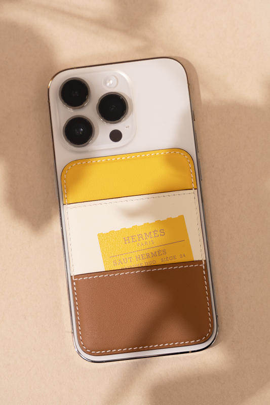 Hermès "Saut Hermès" Magsafe Card Holder in Gold/Nata/Sun/Chaï