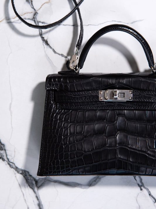Hermès Mini Kelly Matte Alligator in Black PHW