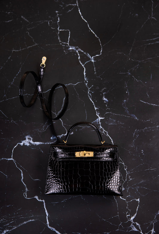 Hermès Mini Kelly Shiny Crocodile in Black GHW