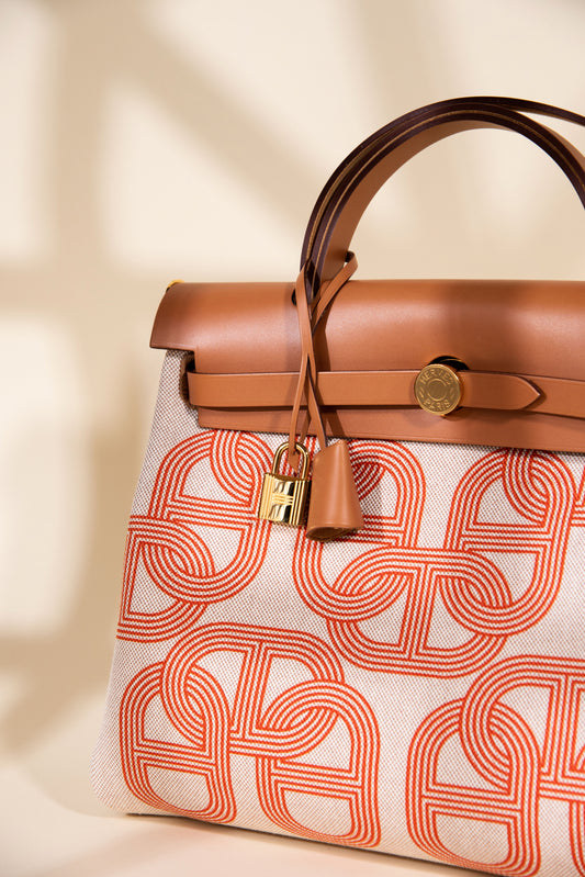 Hermès Herbag 31 in Orange Meccano/Fauve GHW