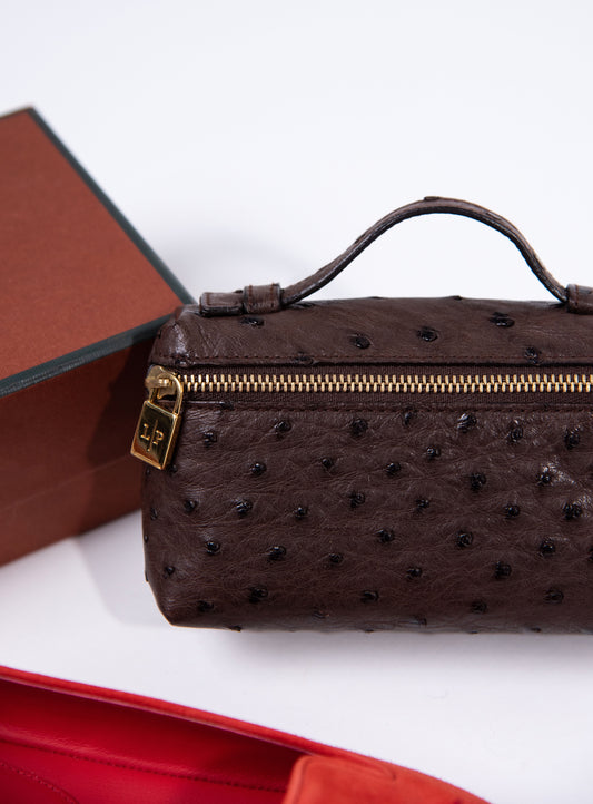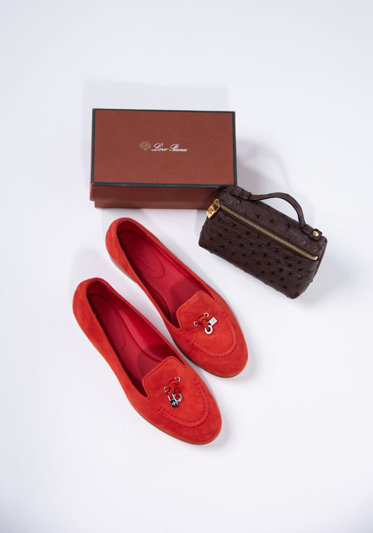 Loro Piana - Red Suede Flats and L14 Brown Ostrich Mini Pouch