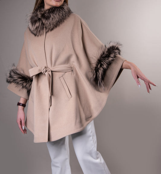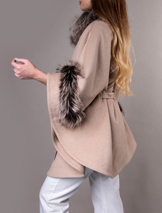Cashmere Cape & Fox Fur in Beige