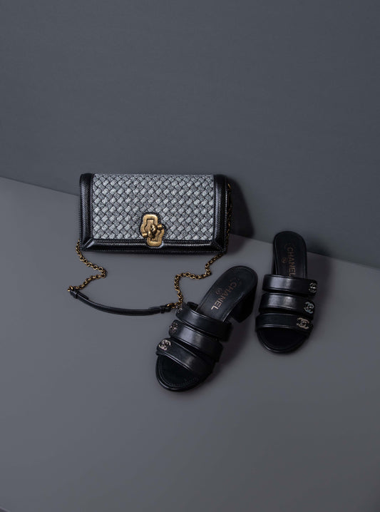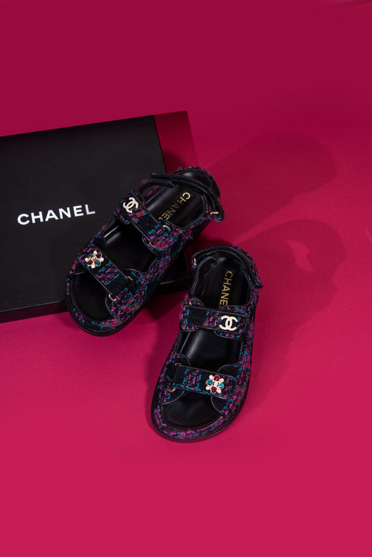 Chanel - Tweed Sandals in Black/Purple