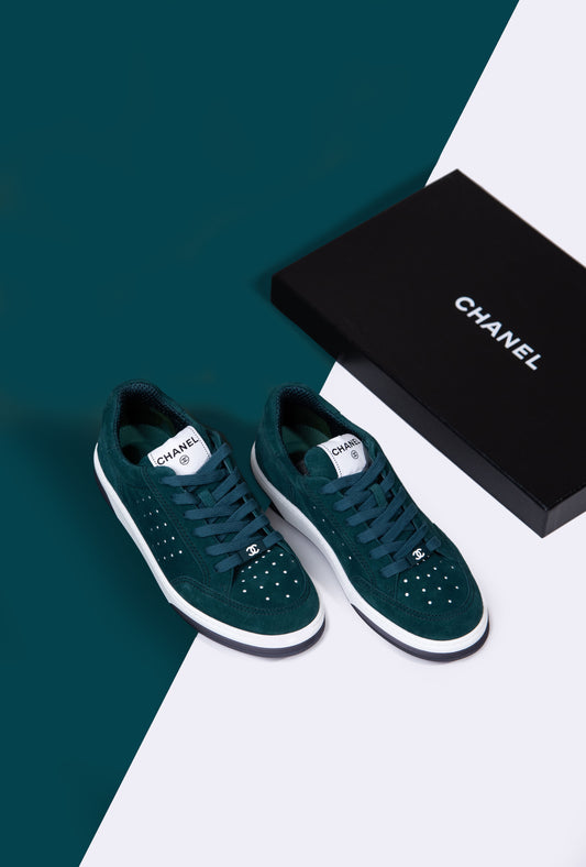 Chanel - Dark Green Suede Sneakers