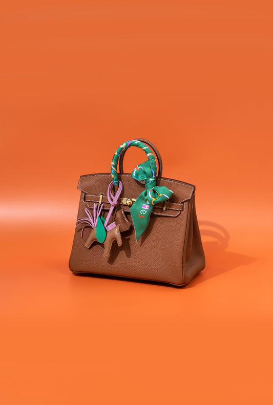 Hermès - Kelly 25 Etoupe GHW with Charm & Twilly