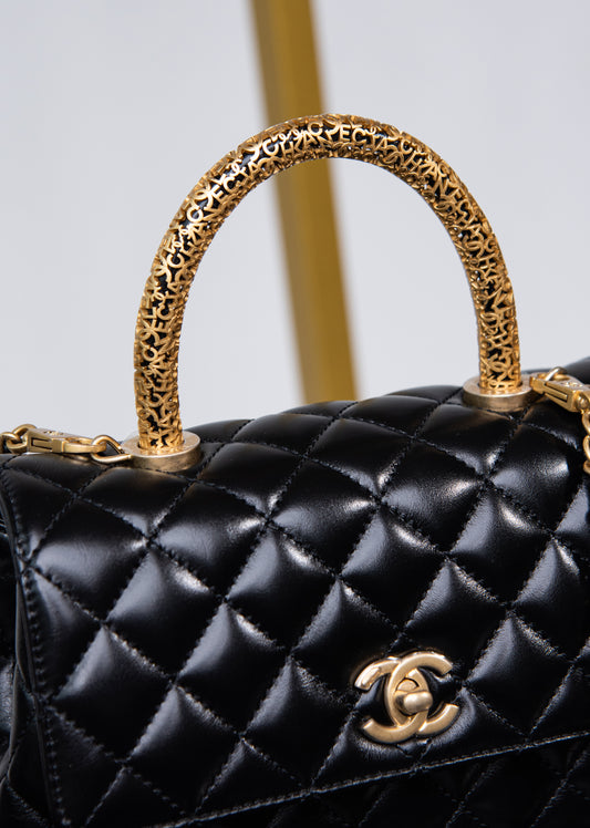 شانيل - حقيبة صغيرة من جلد الحمل بمقبض كوكو مع مقبض معدني