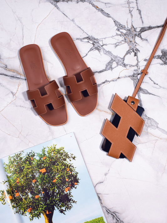 هيرميس - صندل ذهبي من أوران مع غطاء هاتف H-Tag