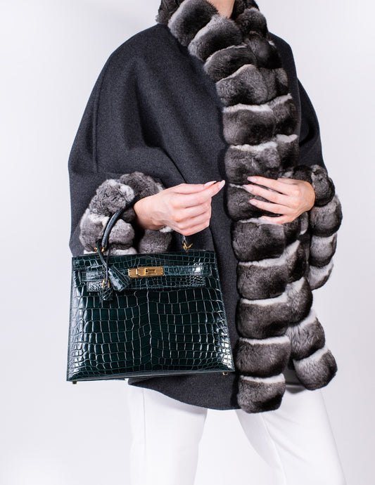 هيرميس - حقيبة كيلي 28 فيرت روسو لامعة من جلد التمساح باللون الأخضر GHW