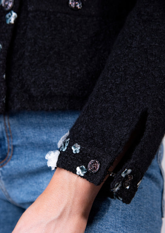 جاكيت شانيل أسود من الصوف والكشمير باللونين الأبيض والأسود