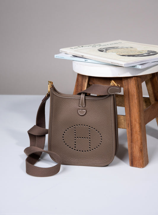 هيرميس ميني إيفلين في Etoupe مع Loewe Jeans