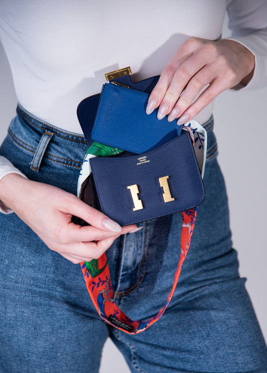محفظة هيرميس رفيعة باللون الأزرق الياقوتي مع تويلي