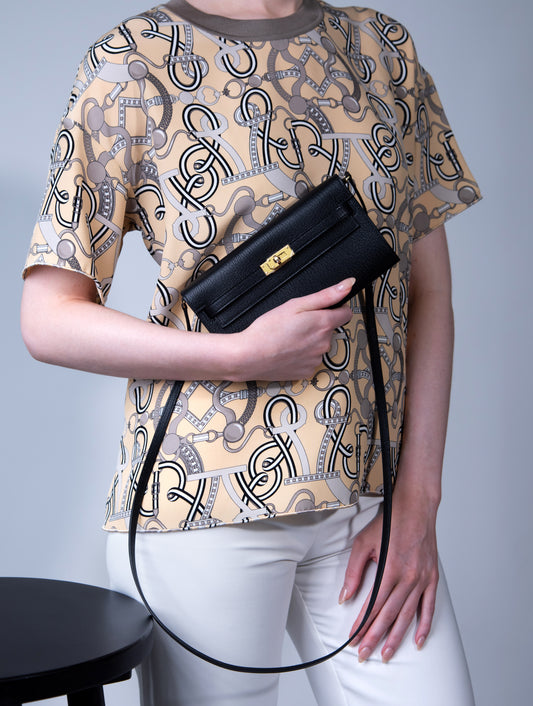 محفظة هيرميس كيلي توغو باللون الأسود GHW مع تويلي