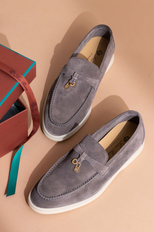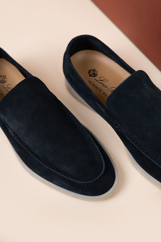 لورو بيانا - حذاء سمر ووك من جلد الغزال باللون الأزرق الكلاسيكي