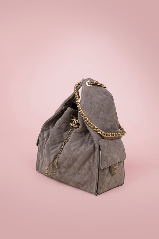 حقيبة شانيل 25 من جلد الغزال باللون الرمادي