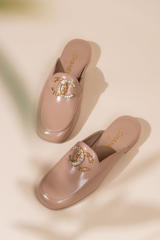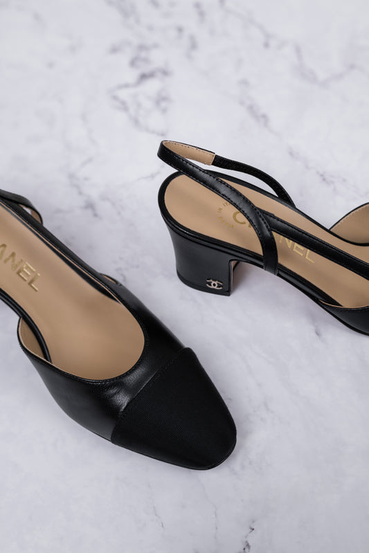 شانيل - حذاء مفتوح من الخلف من الجلد الأسود