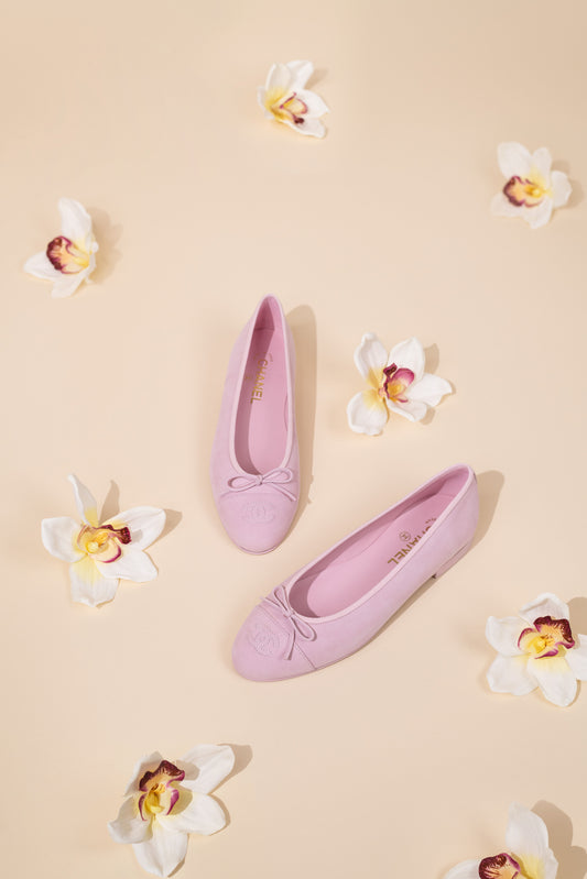 حذاء باليه مسطح من شانيل باللون الوردي الفاتح CC