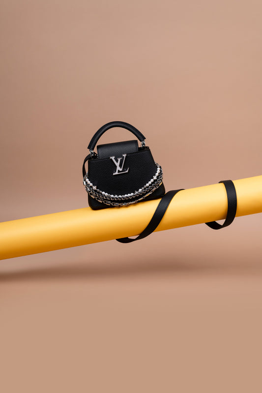 حقيبة لويس فيتون ميني كابوسين سوداء مع سلسلة