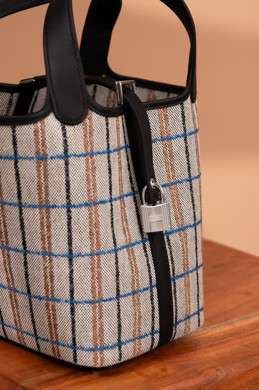 Hermès Limited Edition Picotin 18 in Écru/Noir/Fauve/Bleu Zanzibar PHW