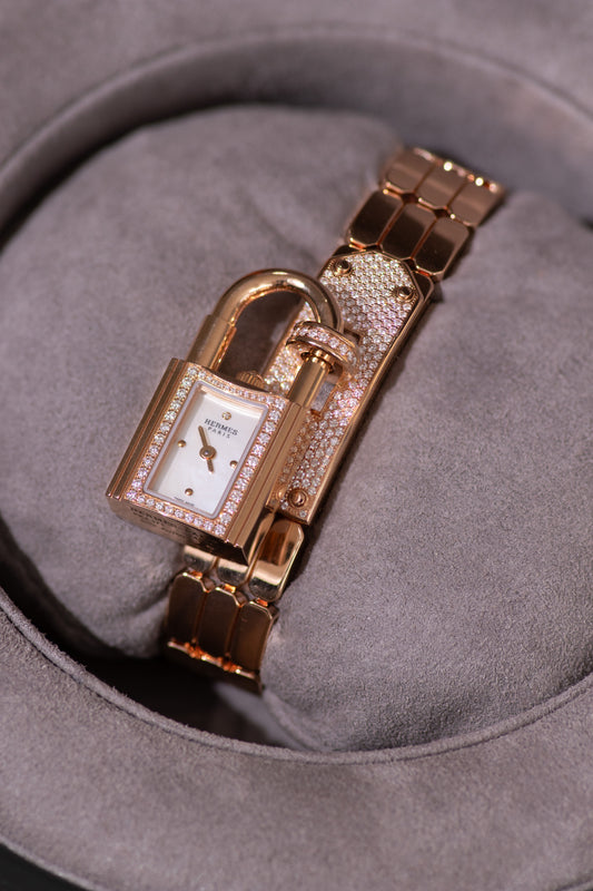 ساعة هيرميس كيلي من الذهب الوردي والماس