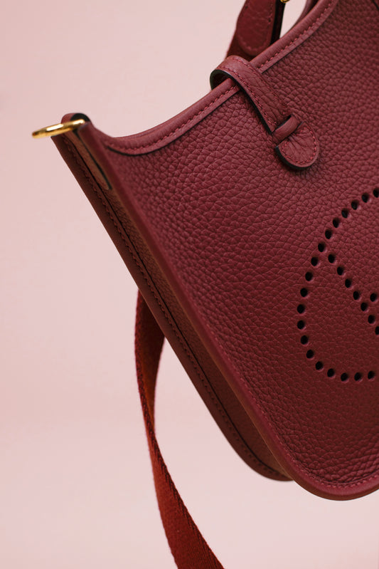حقيبة هيرميس ميني إيفلين كليمنس باللون الأحمر