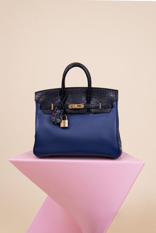 حقيبة هيرمس بيركين 25 تاتش كروكودايل باللون الأزرق النيلي والياقوت الأزرق GHW
