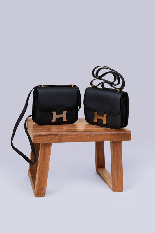 ساعة هيرميس ميني كونستانس 18 سوداء اللون مع RGHW وGHW