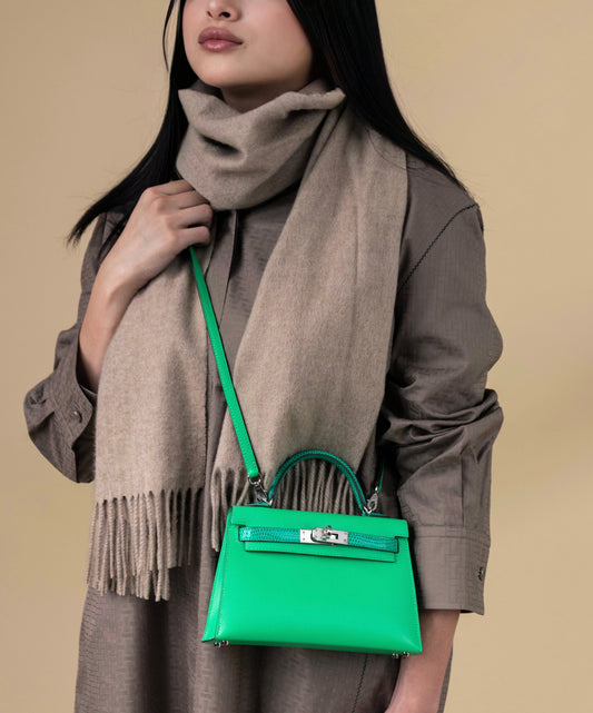حقيبة هيرمس ميني كيلي تاتش أليجاتور كاسيس PBHW وشانيل نانو صغيرة بنفسجية
