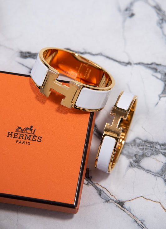 أساور هيرميس كليك إتش باللونين الأبيض والذهبي