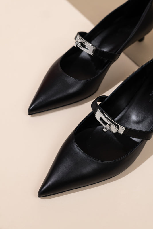 هيرميس - حذاء جاكي 90 أسود بكعب عالٍ