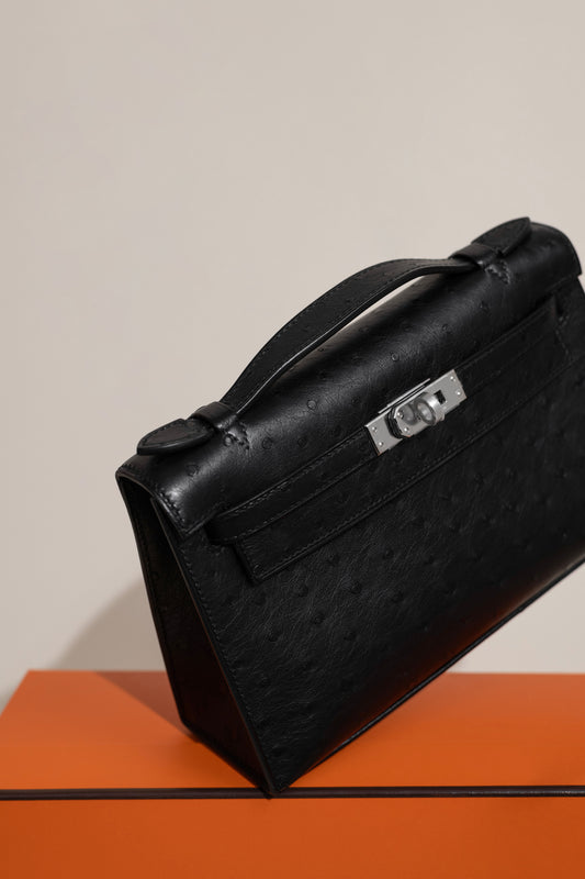حقيبة هيرميس ميني كيلي بوشيت أوستريش باللون الأسود من PHW