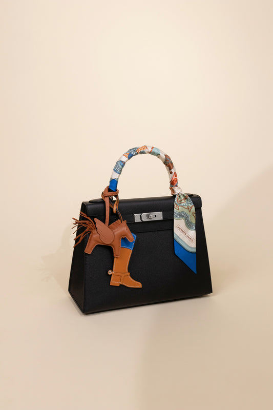 هيرميس كيلي 28 إبسوم سيلير أسود مع دلايات وتويلي