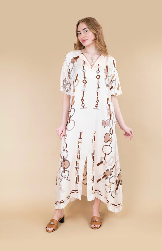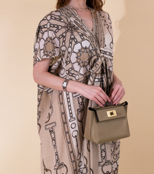 هيرميس "Effet Kaleidscope" قفطان بيج جلايز مع ميني 24/24 بيج مارفا GHW