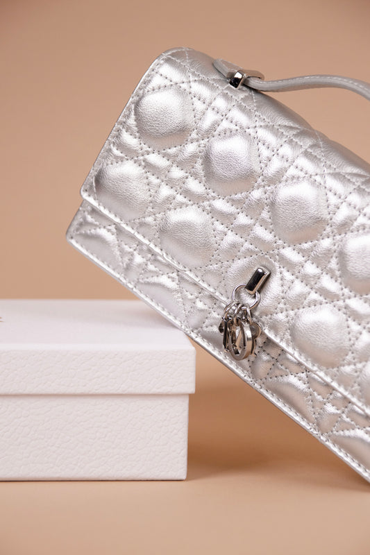 Dior My Dior Mini Bag in Iridescent Metallic Silver Tone Cannage Lambskin