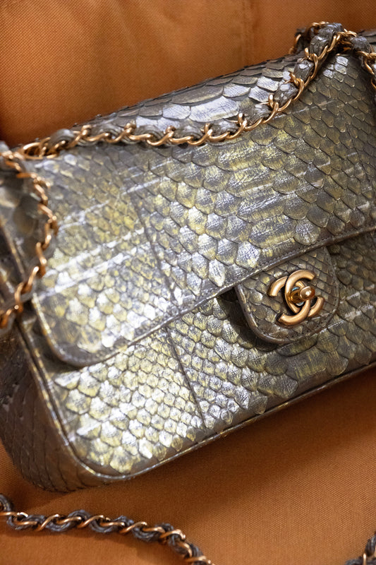 Chanel Medium Metallic Python Flap Bag