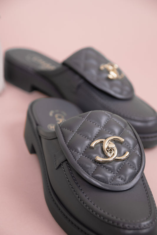 Chanel Grey Moccasins & Hobo 25 Light Grey Bag