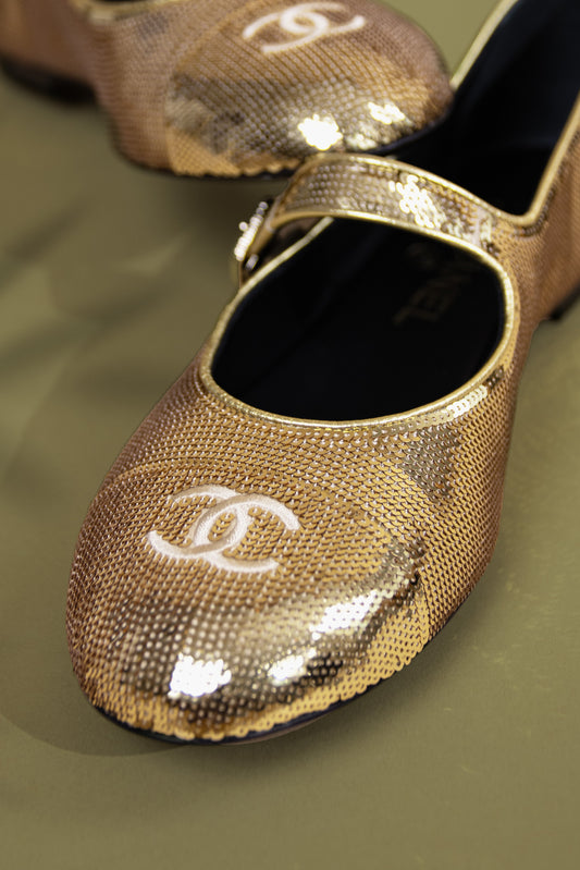 Chanel Gold Sequins Mary Janes