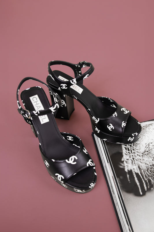 Chanel Black CC Platform Sandals