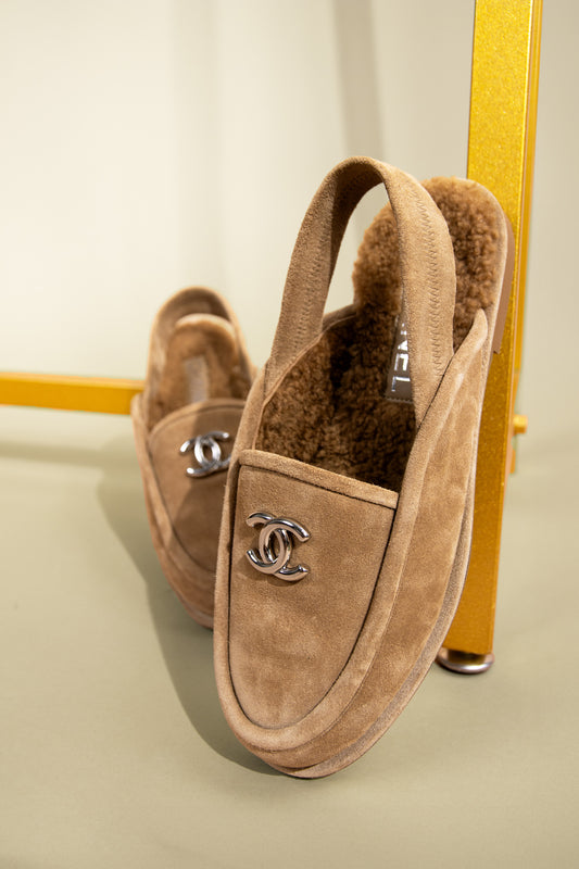 Chanel Suede/Shearling Beige Loafers